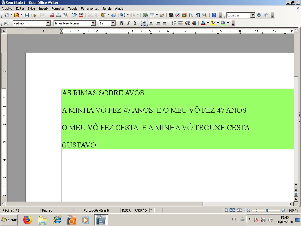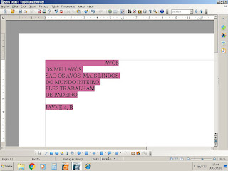 Então apresentei a aula planejada ali: vimos o vídeo e cada aluno então produziu um poema com rimas no editor de texto.